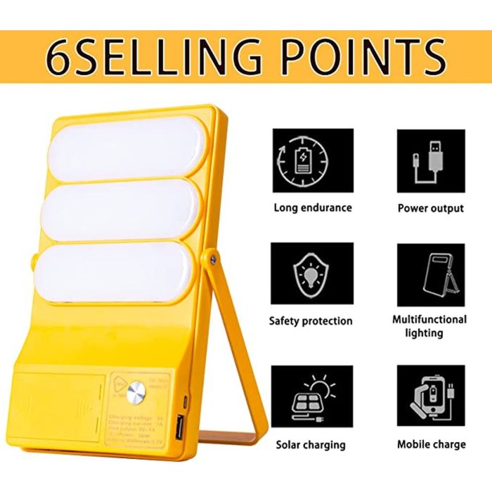 مصباح طوارئ يعمل بالطاقة الشمسية أصفر 4500 مللي أمبير