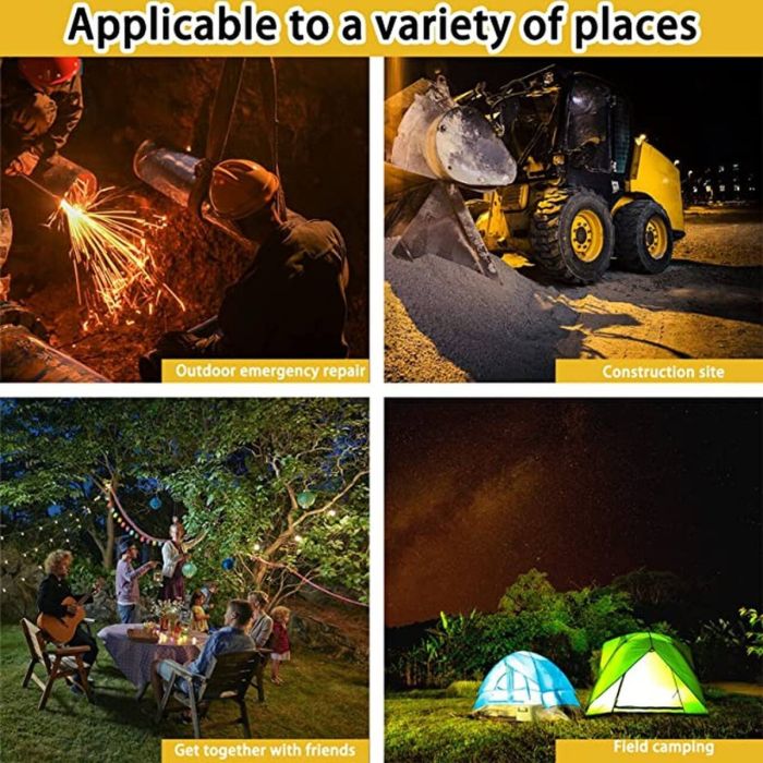 يستخدم هذا المصباح المحمول القابل لإعادة الشحن مفتاح لمس في الأسفل، وهو مريح وسريع (اضغط لفترة طويلة لتشغيل الإضاءة لتبديل وضع الضوء بحرية). يمكن استخدامه أيضًا كبنك طاقة محمول لشحن أجهزتك الإلكترونية (مثل iPhone)) في حالات الطوارئ. شحن USB والشحن الشمسي، يحتوي على بطارية مدمجة قابلة لإعادة الشحن 4500 مللي أمبير في الساعة، ومجهزة بمنفذ إخراج USB للشحن والشحن الشمسي، ويمكن شحن مصباح العمل في الشمس، وتوفير الطاقة وحماية البيئة، والشحن السريع والمريح. بعد الشحن الكامل، يمكن أن يستمر مصباح العمل لمدة 6 ساعات إلى 8 ساعات