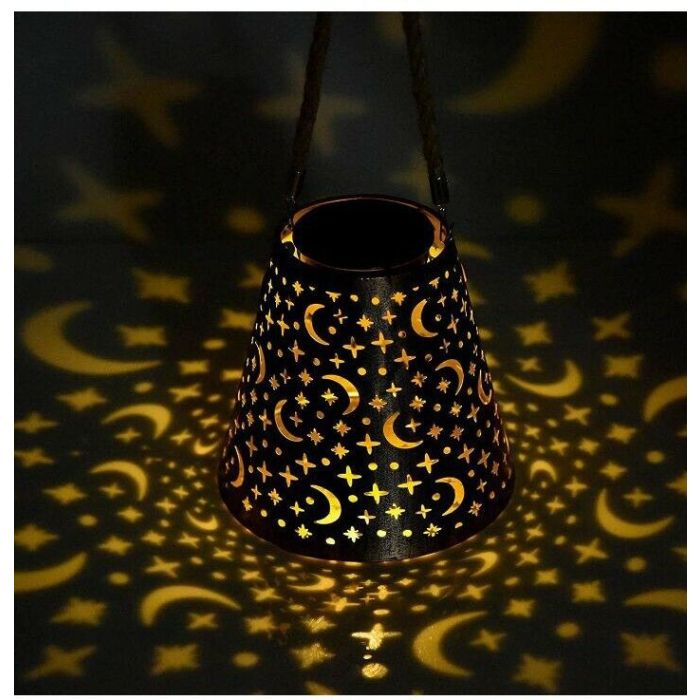 إضافة مشرقة لحديقتك أو ساحتك، مصباح LED الذي يعمل بالطاقة الشمسية يضفي لمسة من السحر على مساحتك الخاصة. يضيف التصميم المجوف مع أنماط القمر والنجوم السحر والرقي، مما يخلق جوًا دافئًا وجذابًا. يتيح لك تصميم الفانوس المعلق متعدد الاستخدامات وصديق للبيئة تزيين الأشجار دون عناء