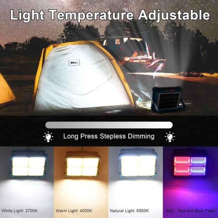 امنح المساحات الخارجية إضاءة أقوى وأكثر عملية مع حل يعتمد على الطاقة الشمسية لسهولة أكبر في الاستخدام اليومي. هذا المصباح مناسب لمن يحتاج إلى إنارة واضحة دون الاعتماد المستمر على التوصيل الكهربائي، مما يجعله خيارًا عمليًا للمداخل، والأسطح، والحدائق، والساحات، والاستخدام الاحتياطي عند الحاجة. كما يمنحك التصميم القابل لإعادة الشحن مرونة أكبر في الاستعمال، بينما تضيف وظيفة الباور بانك فائدة إضافية عند الحاجة إلى شحن الهاتف أو جهاز متوافق في المواقف الطارئة. ومع 4 أوضاع للإضاءة، يصبح أكثر قدرة على التكيف مع الاستخدامات المختلفة خلال اليوم والليل.
