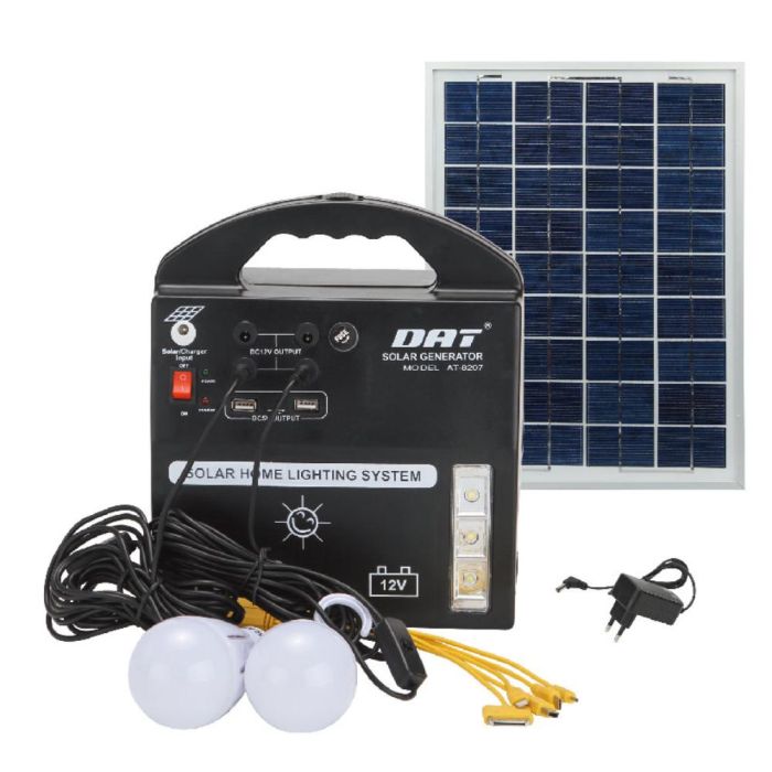 يوفر نظام الطاقة الشمسية حلاً عمليًا للإنارة وشحن الأجهزة في الأماكن التي لا تتوفر فيها الكهرباء. يعمل بلوح شمسي بقوة 10 واط وبطارية قابلة للشحن سعة 9000 مل أمبير، مما يوفر تشغيلًا يصل إلى 8–22 ساعة حسب الاستخدام. يأتي مع 4 لمبات LED وكيبلات طويلة لتوزيع الإضاءة داخل المنزل أو الخيمة، بالإضافة إلى منفذ USB لشحن الهواتف والأجهزة المحمولة