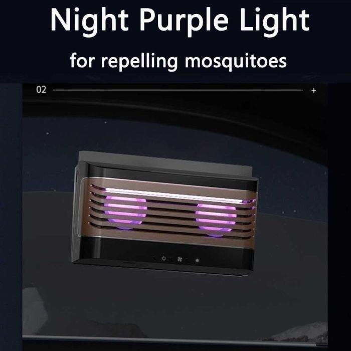 - تتميز بضوء أرجواني لطرد البعوض في الليل، مع مستوى ضوضاء منخفض