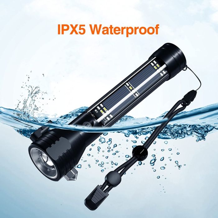 - مصباح يدوي بالطاقة الشمسية متعدد الاستخدامات مع بطارية احتياطية