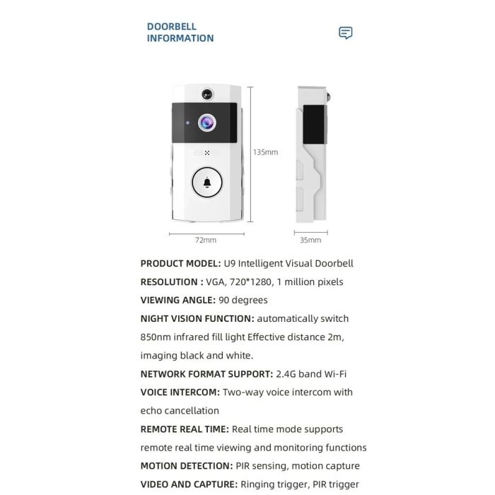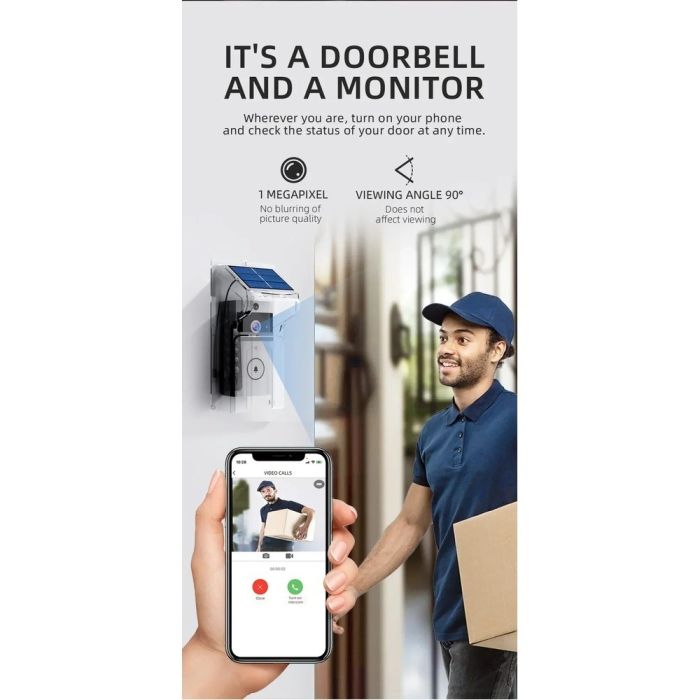 يتيح لك استقبال الزوار ومراقبة المدخل في الوقت الفعلي. يوفر الجرس شحنًا مستمرًا عبر الطاقة الشمسية مع بطارية 3600 مل، ويتميز بكشف الحركة وإمكانية الاتصال المرئي لتعرف من أمام بابك دون الحاجة للحضور الشخصي. تصميمه المتين يحمي الأجهزة ويضمن أداءً طويل الأمد، مما يجعله الحل المثالي للمنزل الذكي.
