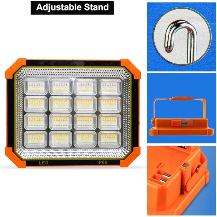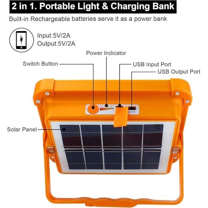 استعد لأي مغامرة مع كشاف LED مزود بقاعدة وشحن مزدوج (طاقة شمسية وUSB)، مزود ببطارية سعة 4000 مل أمبير، كما يوفر إضاءة تدوم حتى 9 ساعات. تصميمه العملي يجعله مثاليًا للرحلات، المخيم، أو الطوارئ. قم بشحنه بالطاقة الشمسية أو عن طريق الكهرباء، وتمتع بإضاءة قوية في أي وقت ومكان. حل ذكي وموثوق لجميع الاستخدامات الخارجية