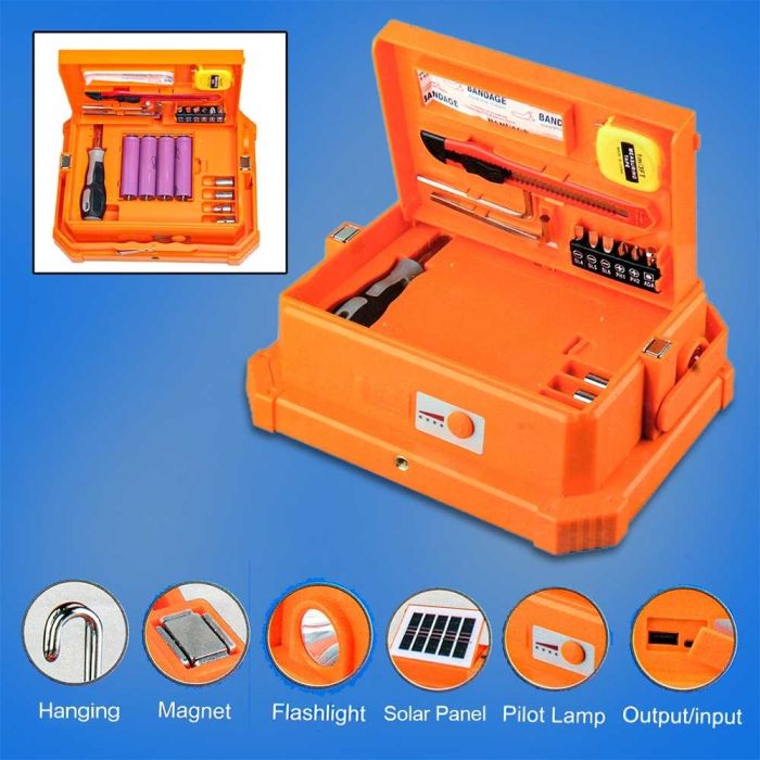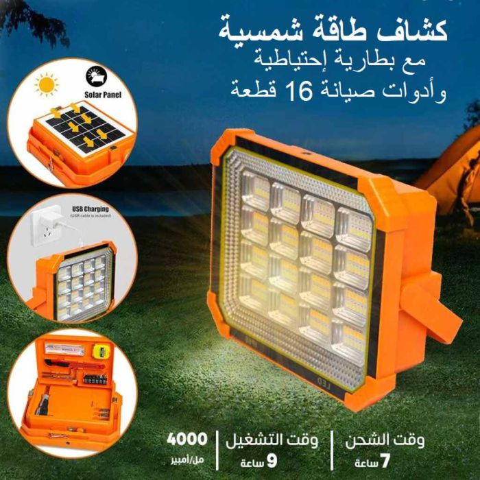 كشاف طاقة شمسية مع بطارية احتياطية 4000 مل أمبير وأدوات صيانة 16 قطعة