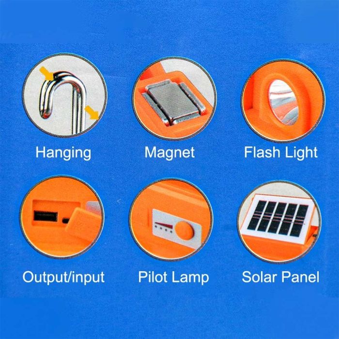 - قاعدة متينة تتيح استخدامه كمصباح مكتبي أو كشاف طوارئ