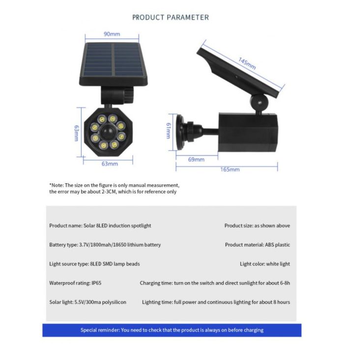 - كشاف إضاءة شمسي بشكل كاميرا مراقبة ذكي للحدائق