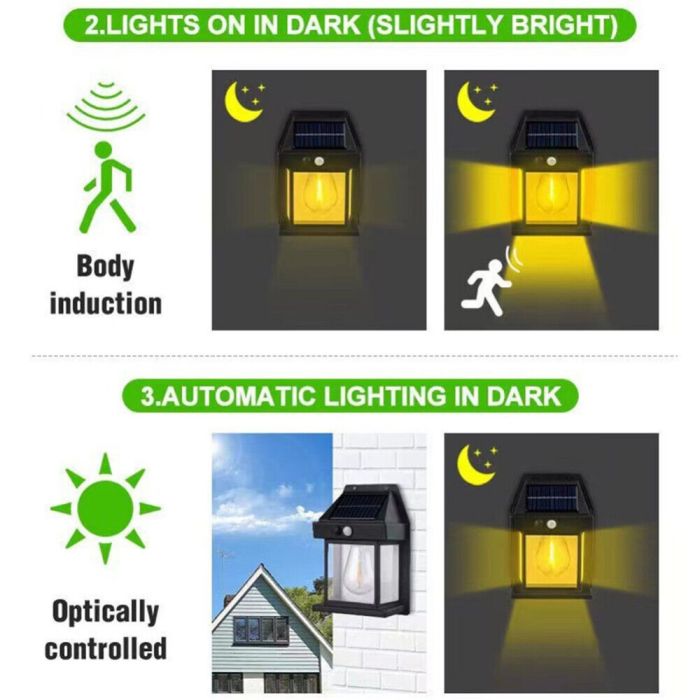 كشاف جداري شمسي بمستشعر حركة ذكي للإضاءة الخارجية مصنوع من خامات عالية الجودة، يعمل بالطاقة الشمسية مع إضاءة تلقائية ليلاً، مزود بحساس حركة واستشعار ضوئي، يوفر 3 أوضاع تشغيل لتغطية مثالية وأمان إضافي