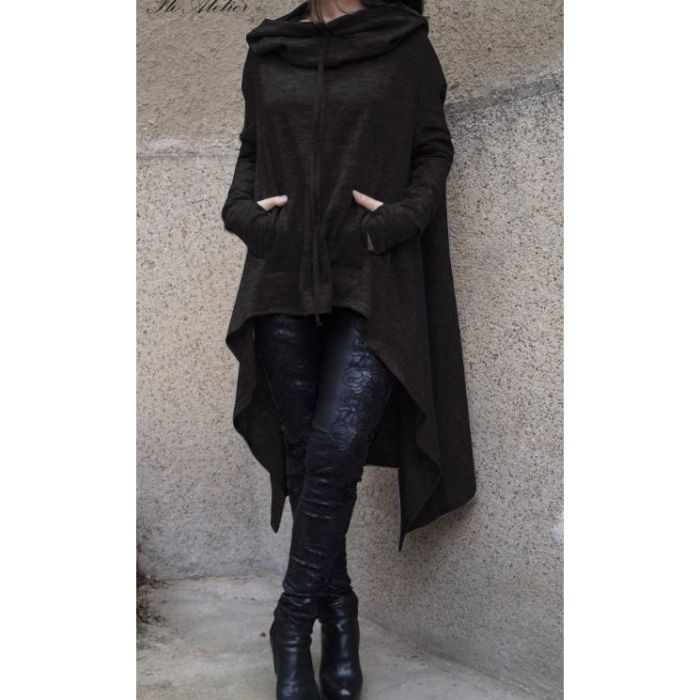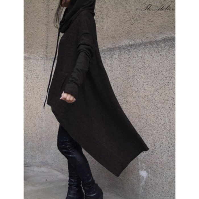 - كارديجان سادة كاجوال بأكمام طويلة وغطاء للرأس للسيدات