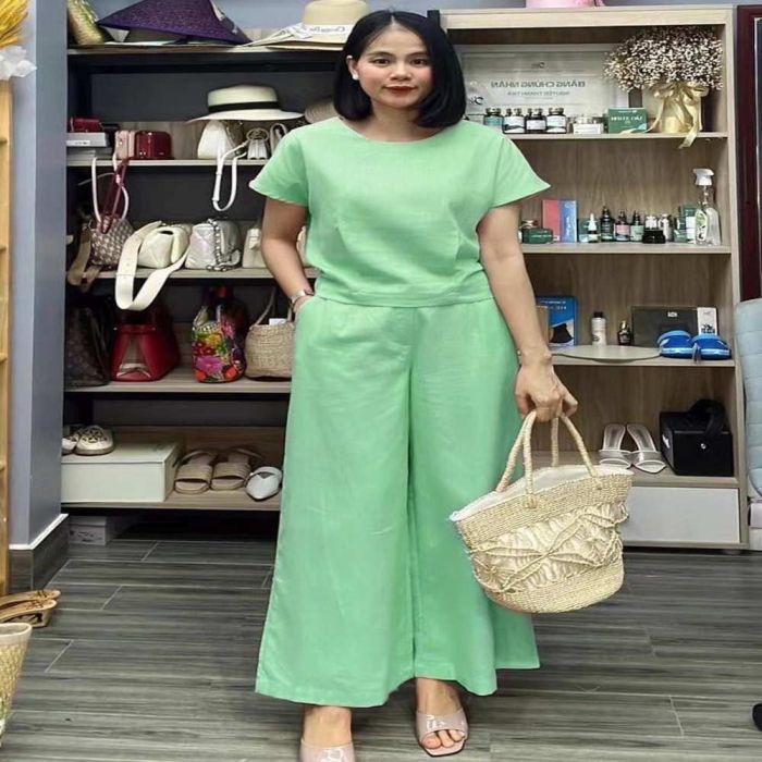 طقم سادة أنيق بأكمام قصيرة للسيدات مصنوع من نسيج ناعم وانسيابي، يتميز بتصميم أنيق يتكون من قطعتين، مريح متعدد الاستخدام، مرن وداعم، ويمنح مظهراً متكاملاً وجذاباً، يحافظ على جودته وشكله الأنيق، خيار ممتاز لإطلالة سريعة وأنيقة.