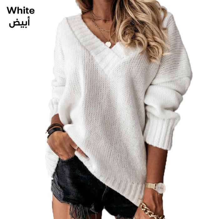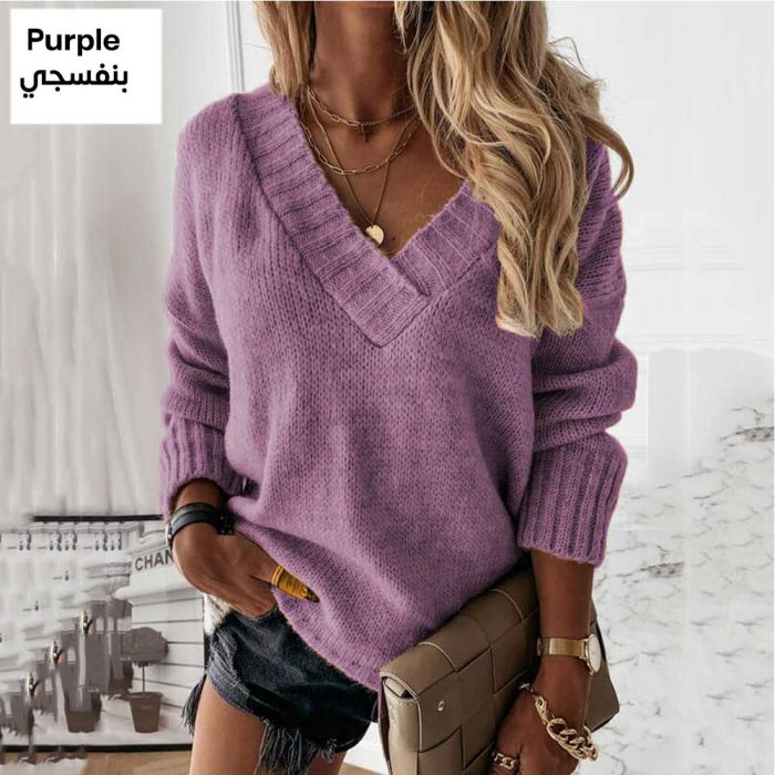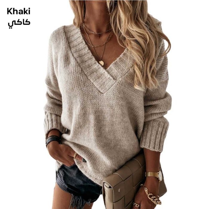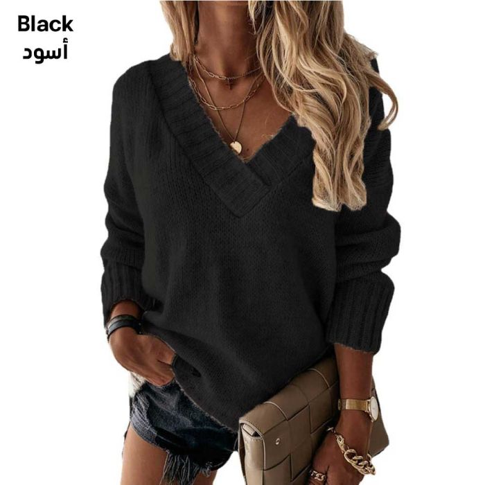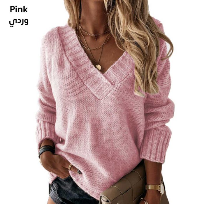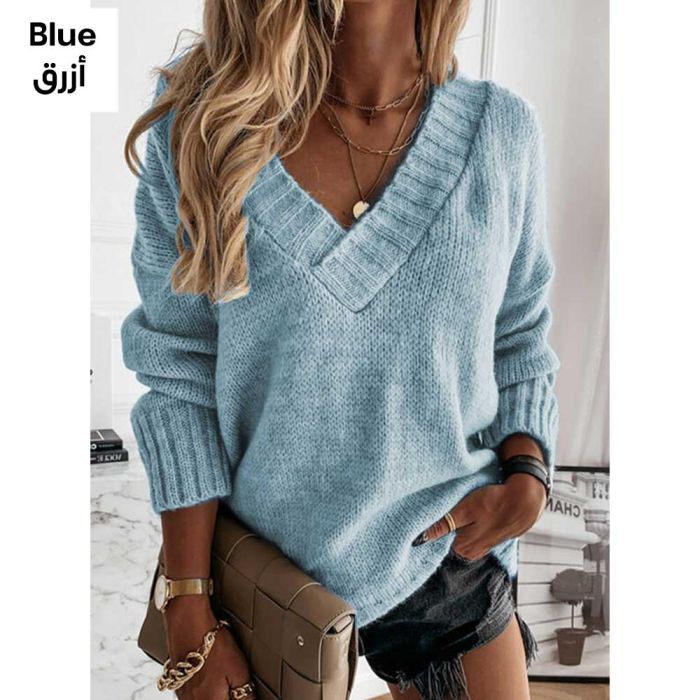 - بلوزة بأكمام طويلة ورقبة شكل حرف V للسيدات