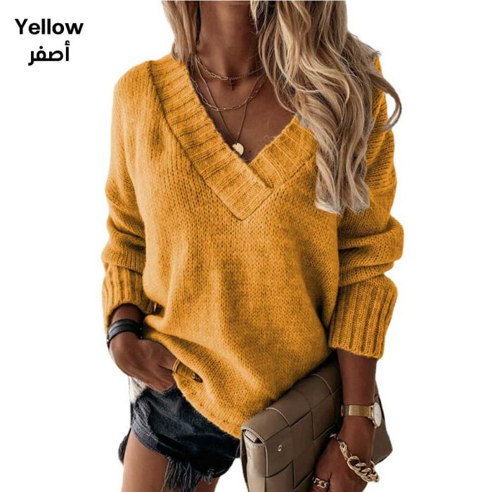 بلوزة صوفية سادة أكمام طويلة للسيدات مصنوعة من نسيج محبوك عالي الجودة، تتميز بتصميم سادة كلاسيكي برقبة على شكل حرف V وأكمام طويلة، توفر إطلالة أنيقة ودافئة ومريحة، وهي قطعة أساسية متعددة الاستخدام لموسم الخريف والشتاء.