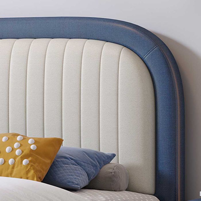 - الخامة: خشب صلب مع ظهر مبطن بقماش ناعم سهل التنظيف