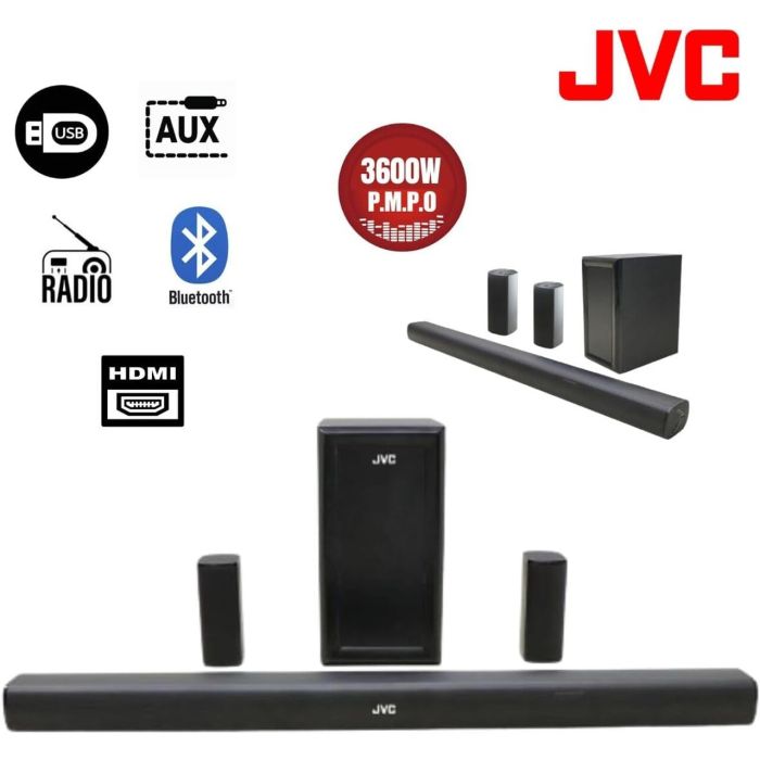 يبث هذا النظام الصوتي من JVC تجربة سينمائية غامرة مع صوت محيطي وبيس قوي عبر مكبر الصوت ولوحة مضخم صوت لاسلكي بقدرة إجمالية تصل إلى 3600 واط. يناسب الأفلام والألعاب والموسيقى والبث المباشر بجودة عالية داخل تصميم أنيق قابل للوضع على الطاولة.