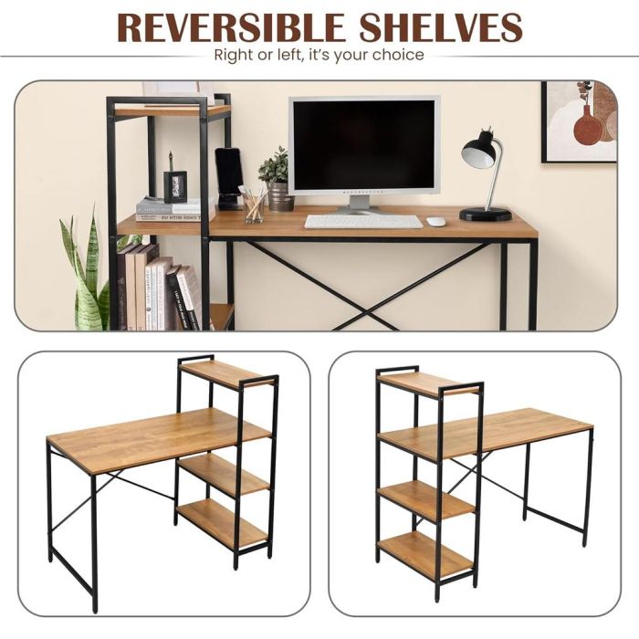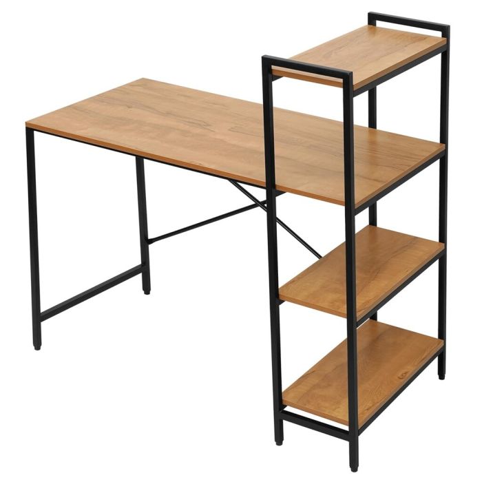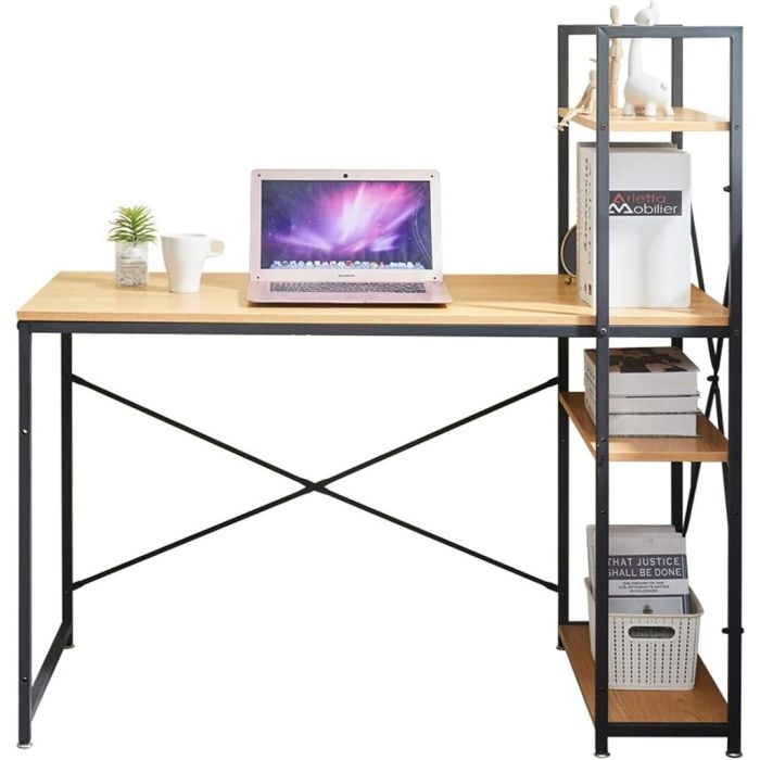 أثث منزلك بإبداعية، طاولة خشبية بتصميم مدمج تناسب وضعها في أي زاوية، كما يمكن تبديل وضعية الأرفف الجانبية، بينما يوفر هيكلها المعدني شديد التحمل وتصميم ظهر الطاولة على شكل X المزيد من الدعم، ما يجعلها مثالية لغرف الدراسة، المكاتب، وأماكن العمل