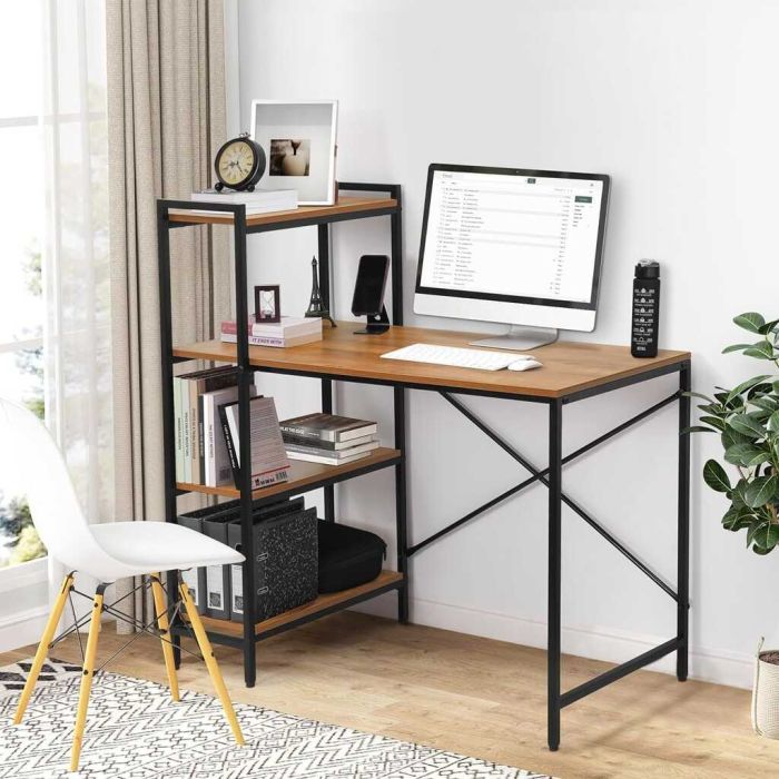 - سطح مكتب واسع يناسب اللابتوب، والشاشة، ولوحة المفاتيح، والملحقات