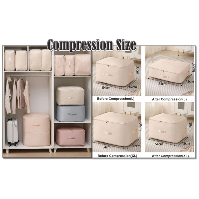 تعمل هذه الحقيبة القوية الموفرة للمساحة على تقليص حجم العناصر الضخمة مثل الألحفة والملابس بسهولة، وهي مثالية للسفر أو التخزين. كما انها قابلة للتوسيع وتوفر حلولاً متعددة الاستخدامات لتنظيم متعلقاتك.