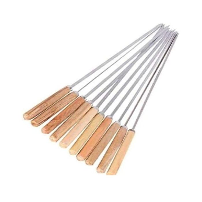 - أسياخ شواء من الستانلس ستيل بمقابض خشبية 6 حبة