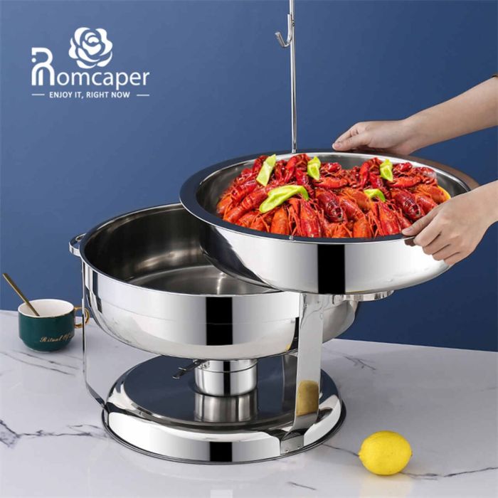 - طبق بوفيه لتسخين الطعام من الاستانليس ستيل مع غطاء معلق