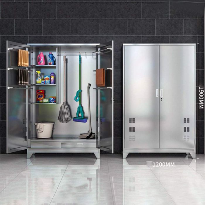- منظم ستانلس ستيل متعدد الإستخدامات مع باب مزدوج بقفل - 190 × 120 × 40 سم