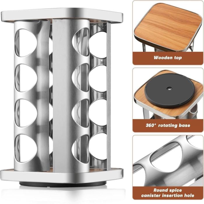 - منظم توابل دوّار ستانلس بـ 16 مرطبان