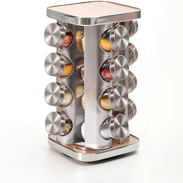 منظم توابل دوّار ستانلس بـ 16 مرطبان