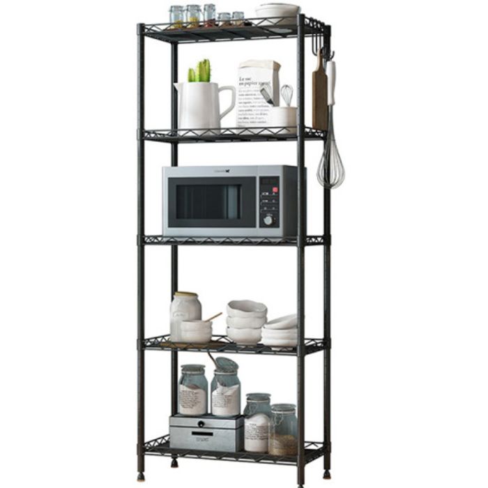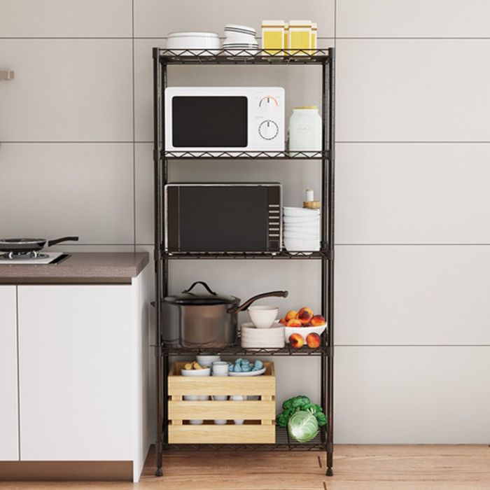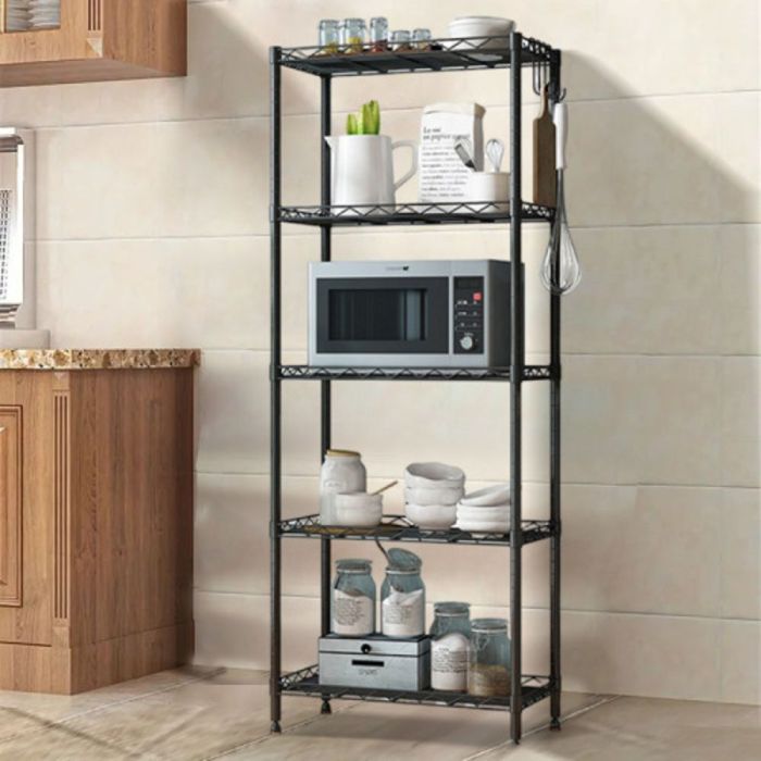 منظم مطبخ 5 طبقات مصنوع من فولاذ كربوني متين، بتصميم متعدد الطبقات يمنحك ترتيباً واضحاً وسهولة وصول، هيكل ثابت يتحمل الاستخدام اليومي، مناسب للمطبخ ويمكن استخدامه في غرف المعيشة أو المخازن أو الشرفات