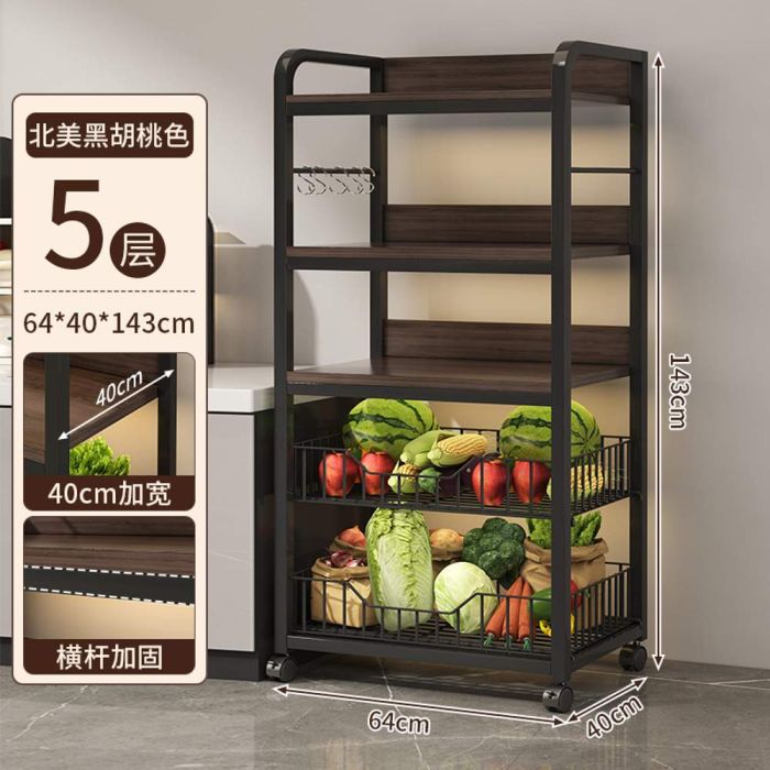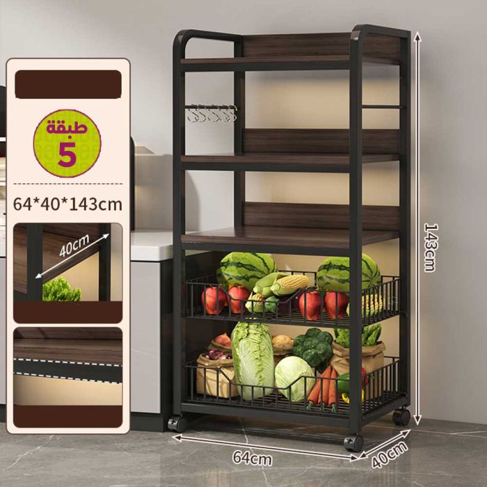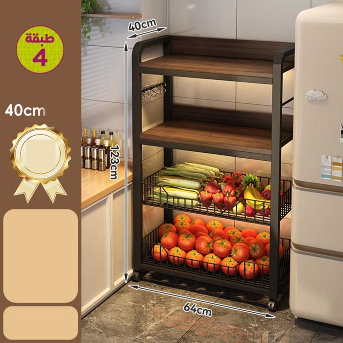 - منظم مطبخ فولاذي مع أرفف خشبية وعجلات