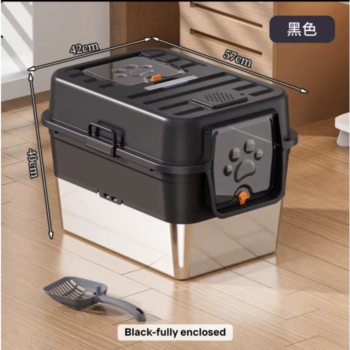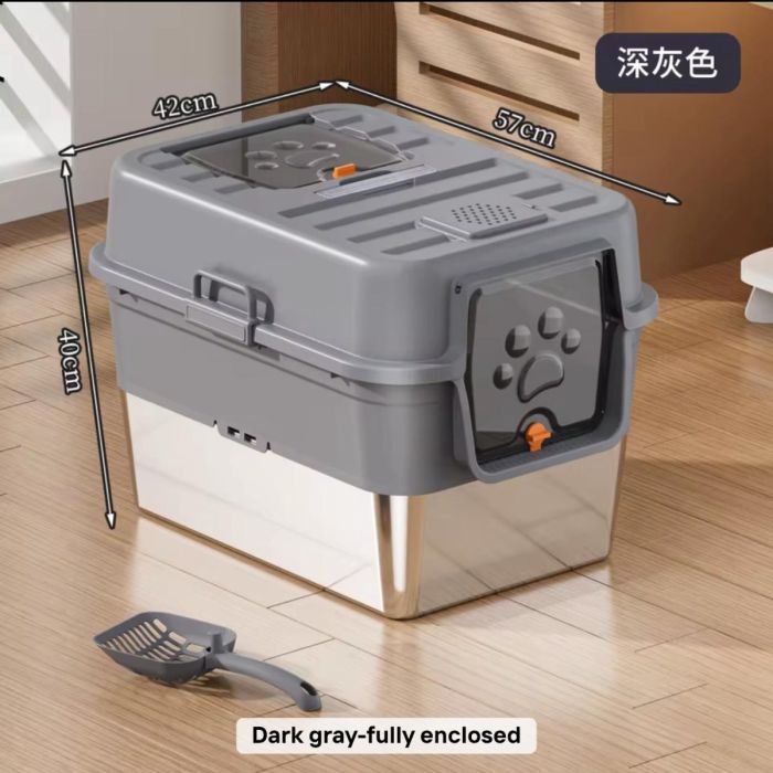 - صندوق فضلات متين من الفولاذ المقاوم للصدأ للقطط