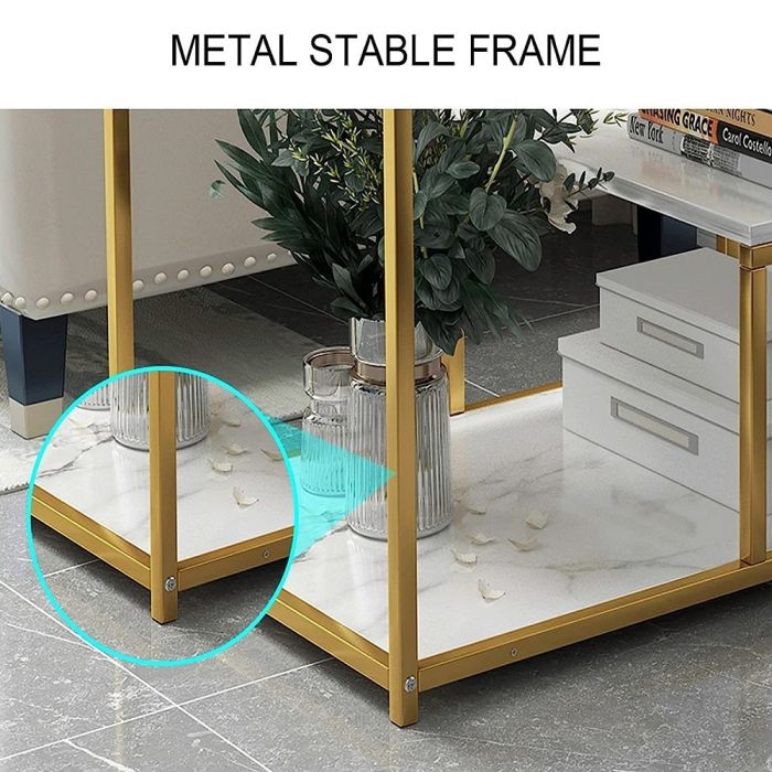 قم بتحويل منزلك إلى مساحة أكثر جاذبية مع هذه الطاولة الفاخرة متعددة الوظائف. استخدمها كطاولة قهوة أنيقة، طاولة جانبية لترتيب الأغراض، أو كقطعة ديكور تعرض أفضل اختياراتك، تصميم بثلاثة مستويات يمنحك مساحة إضافية، مع سطح مقاوم للتلف وإطار معدني مطلي باللون الذهبي. بفضل أبعادها المثالية والتصميم خفيف الوزن، تناسب الطاولة أي غرفة بسهولة، لتضيف لمسة من الرقي والأداء العملي إلى منزلك