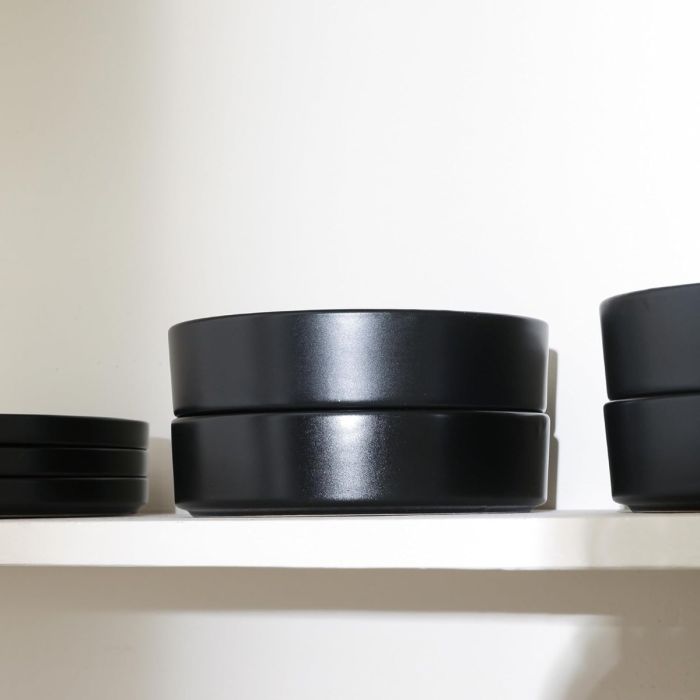 طقم عشاء عصري لخدمة 4 أشخاص، مصنوع من ستونوير متين، يشمل أطباق، أوعية للحبوب والمكرونة، آمن للميكروويف وغسالة الصحون.