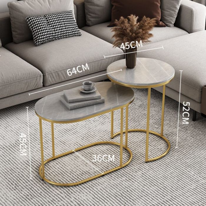 - طقم 2 طاولة جانبية متداخلة بسطح حجري مع إطار فولاذي