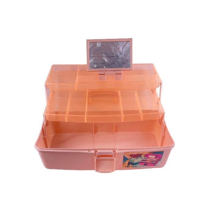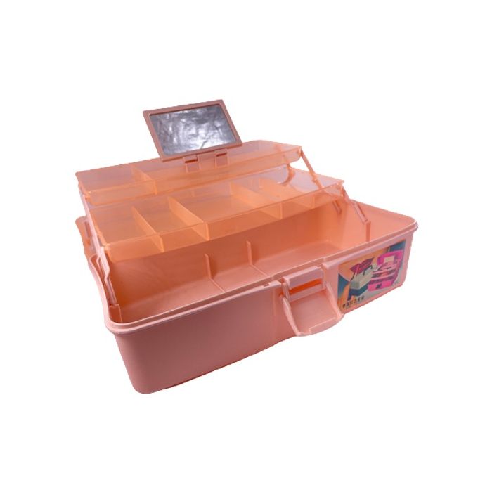 - يتميز المنتج بخفة وزنه التي تُسهّل حمله أينما ذهبت. كما أن نظام التخزين ثلاثي الطبقات يُسهّل تخزين المزيد من الأغراض في نفس الصندوق، مع إمكانية فكّه بأمان دون أي انسكاب بفضل تصميمه المفتوح والشفاف.