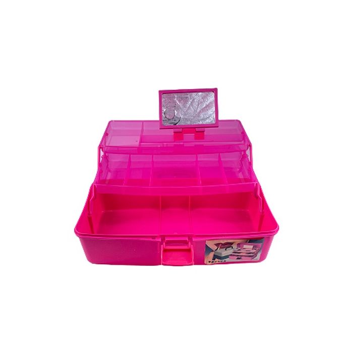 صندوق تنظيم وتخزين أدوات المكياج مع مرآة