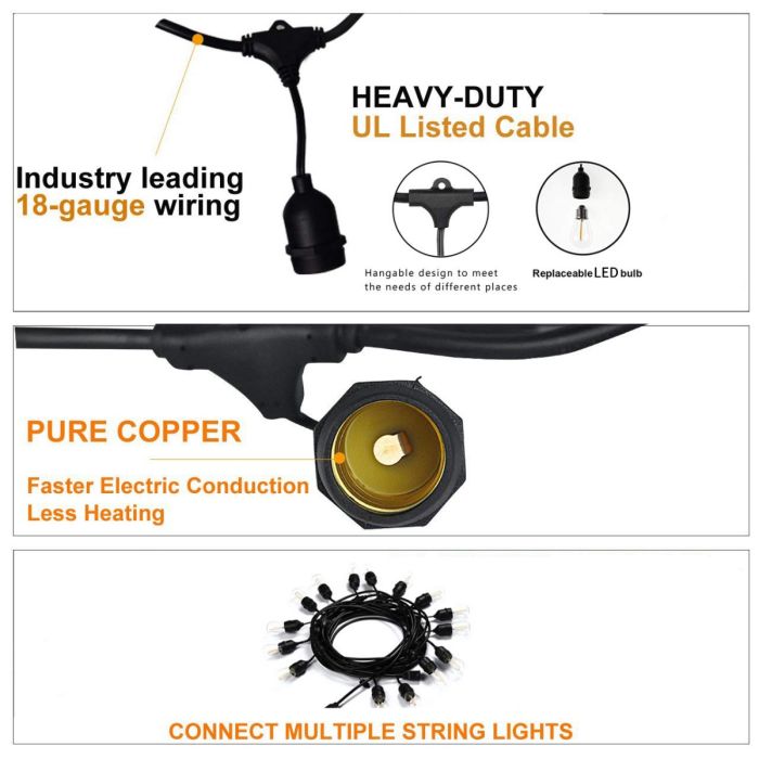 عزز الإضاءة الخارجية أو الداخلية بمقابس تعليق مصابيحنا المتميزة. يمتد هذا الامتداد 20 مترًا، ويدعم 20 مقبسًا من النحاس الخالص، مصممًا لتوصيل فائق وحرارة ضئيلة. بفضل التصميم القوي، تضمن هذه المقابس أداءً موثوقًا به. سهلة التركيب ومتعددة الاستخدامات، وهي مثالية لتحويل أي مساحة