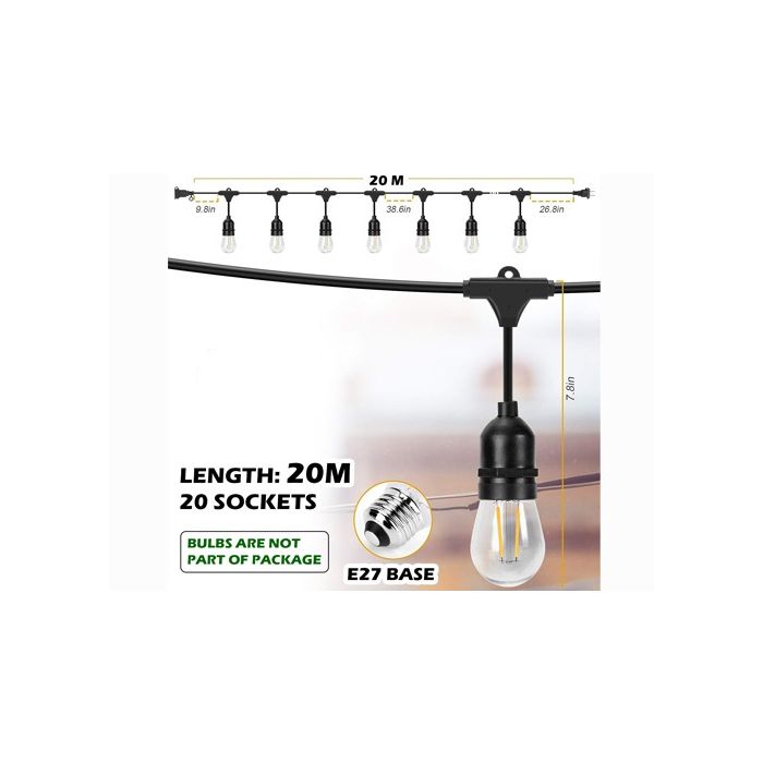 صفقة اليوم هي مقابس تعليق مصابيح خيطية مع 20 قاعدة للمصباح - 20 متر