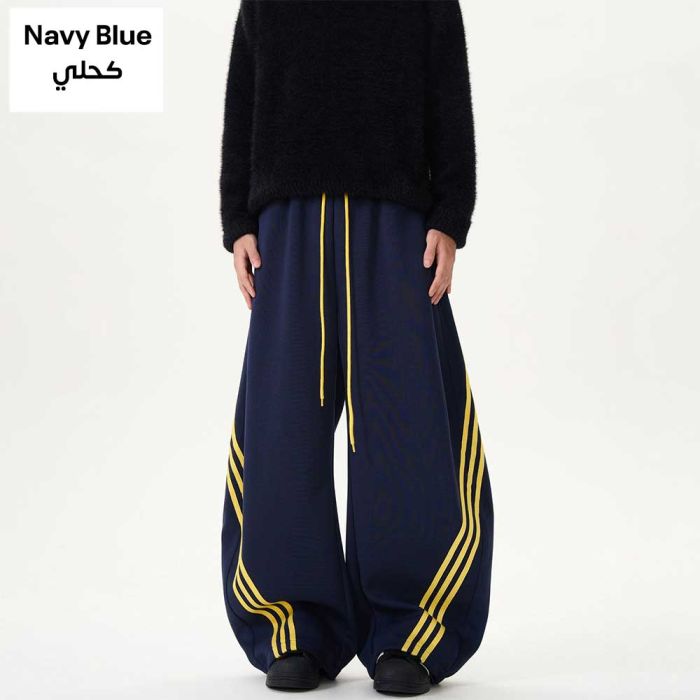 - بنطلون واسع Stripes بخصر مطاطي