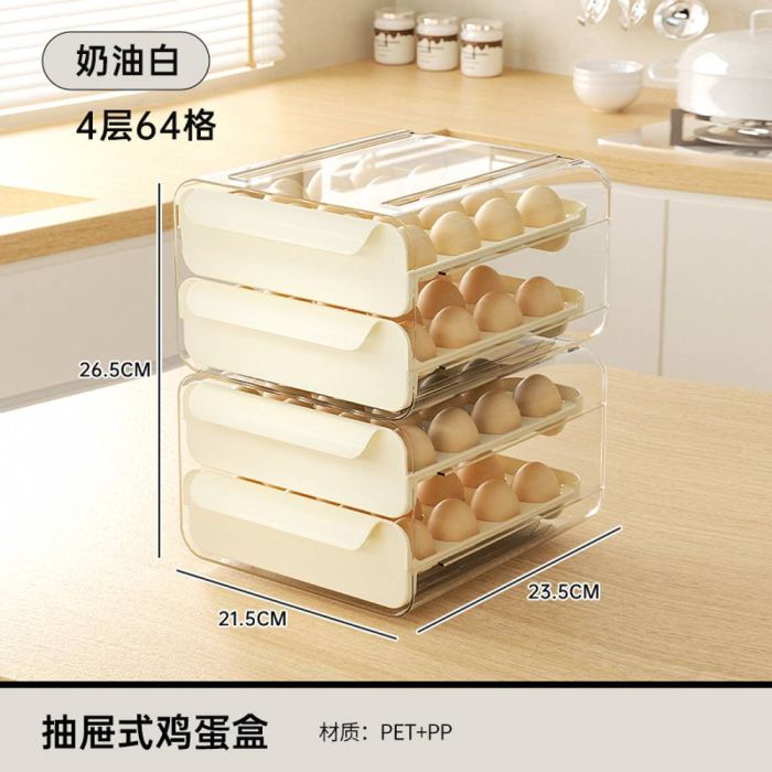 علبة حفظ بيض درج ثنائي مصنوع من PET وPP، تصميم درج مزدوج يسهل الوصول والتنظيم، يحافظ على ترتيب البيض داخل الثلاجة، يوفر مساحة مرتبة وأناقة عملية في مطبخك