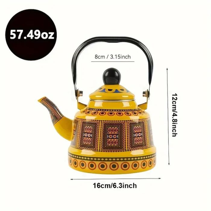 غوري شاي مزخرف سعة 1.7 لتر يجمع بين التصميم الأنيق والأداء العملي، مصنوع من معدن مطلي مقاوم للصدأ والتآكل لضمان المتانة، يوفر توصيل حراري سريع لتسخين متساوٍ، ويتميز بقاعدة مسطحة لسهولة الاستخدام، مقاوم للحروق لسلامتك، مثالي للاستخدام في المنزل أو أثناء السفر، النزهات والتخييم، كما أن سطحه الأملس يجعله سهل التنظيف، إضافة رائعة لأي مطبخ بمظهر جذاب ووظائف متعددة