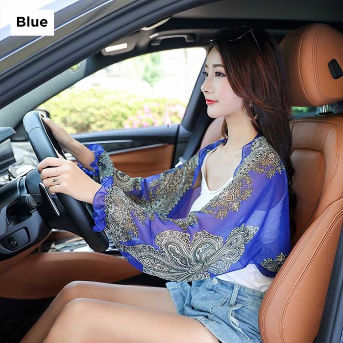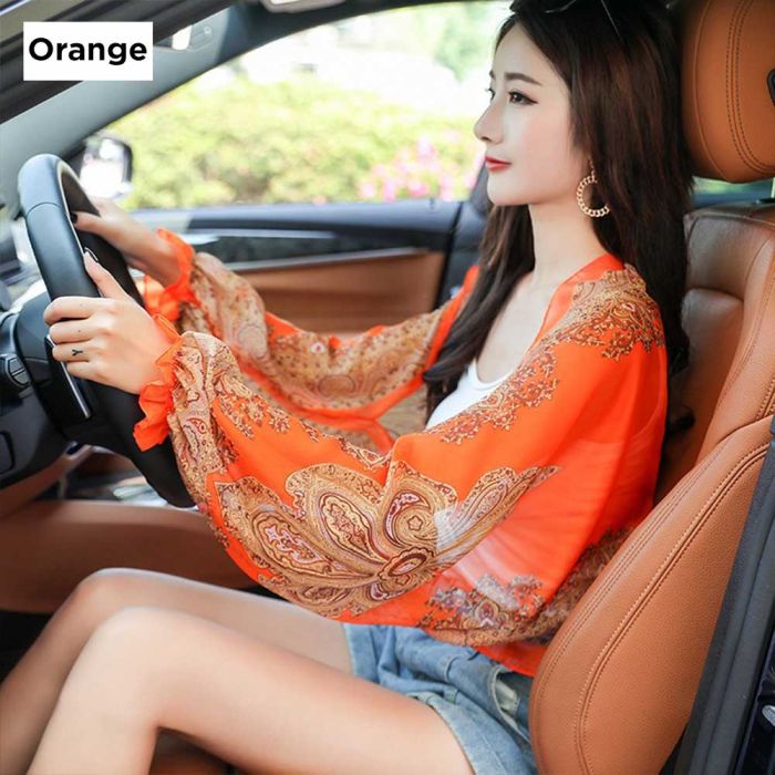 تألقي بإطلالة فريدة مع هذا الكِمُونو المصنوع من الشيفون الحريري، المصمم ليمنحك الراحة والأناقة مع حماية من أشعة الشمس. بطول 160 سم، يوفّر تغطية مريحة وانسيابية دون أن يؤثر على أناقتك. يمكن ارتداؤه بطرق متعددة ليضيف لمسة أنثوية ساحرة لأي مظهر. مثالي لأيام الصيف المُشمسة.