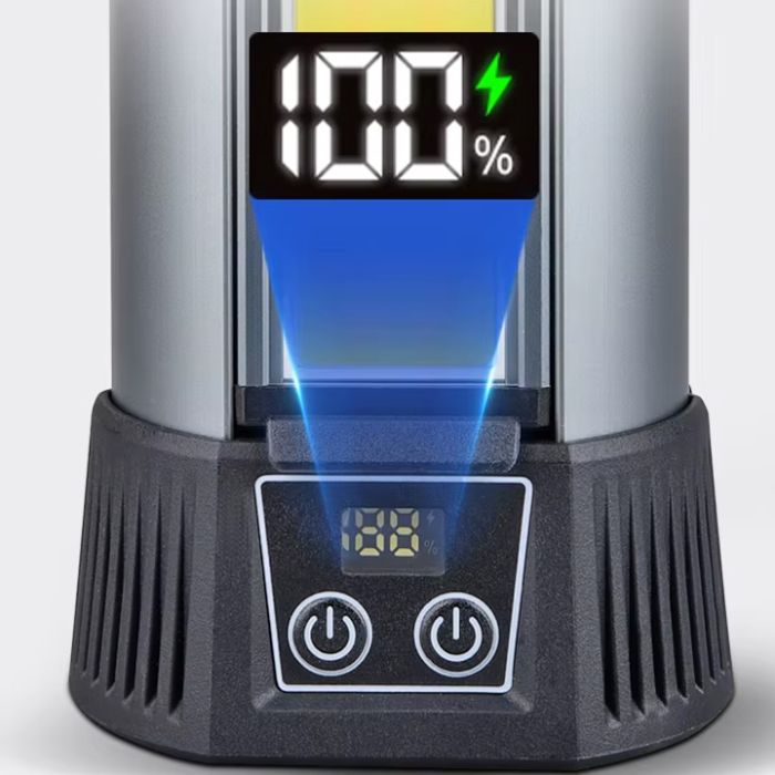 مصباح المخيم LED القابل لإعادة الشحن هو الحل المثالي للإضاءة المحمولة لعشاق الأنشطة الخارجية والمحترفين. يتميز بسطوع عالٍ يضمن وضوح الرؤية والسلامة في أي مكان. كما أن هيكله المصنوع من سبائك الألومنيوم والنايلون المتين يجعله مقاومًا للماء وجاهزًا للاستخدام الشاق. مع بطارية مدمجة قابلة للشحن، يعمل كبطارية احتياطية لشحن الأجهزة أثناء التنقل.