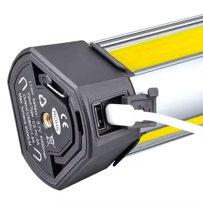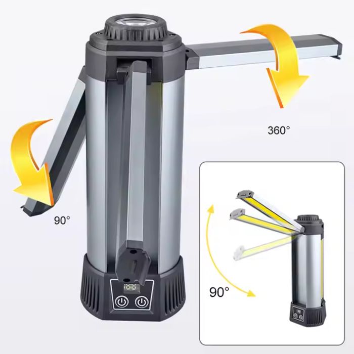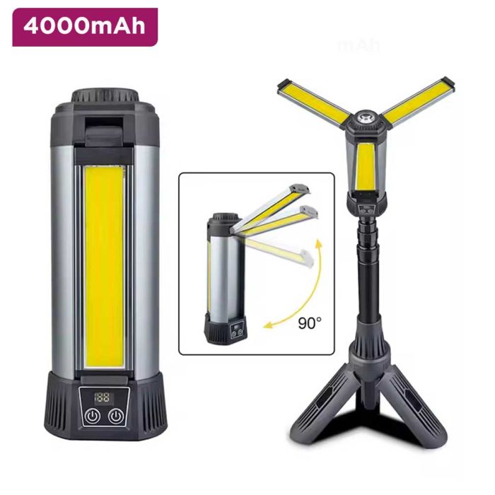 - مصباح LED فائق السطوع وقابل للشحن للمخيم مع ارتفاع قابل للتعديل وبطارية احتياطية