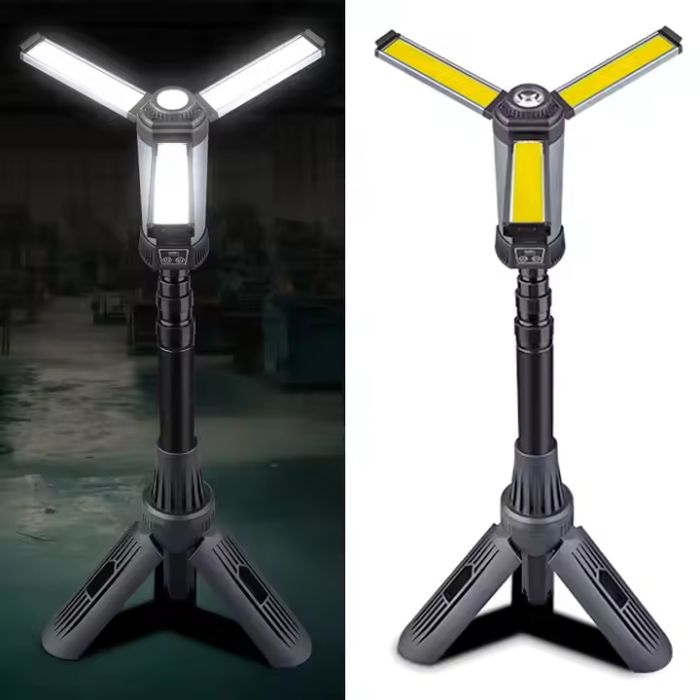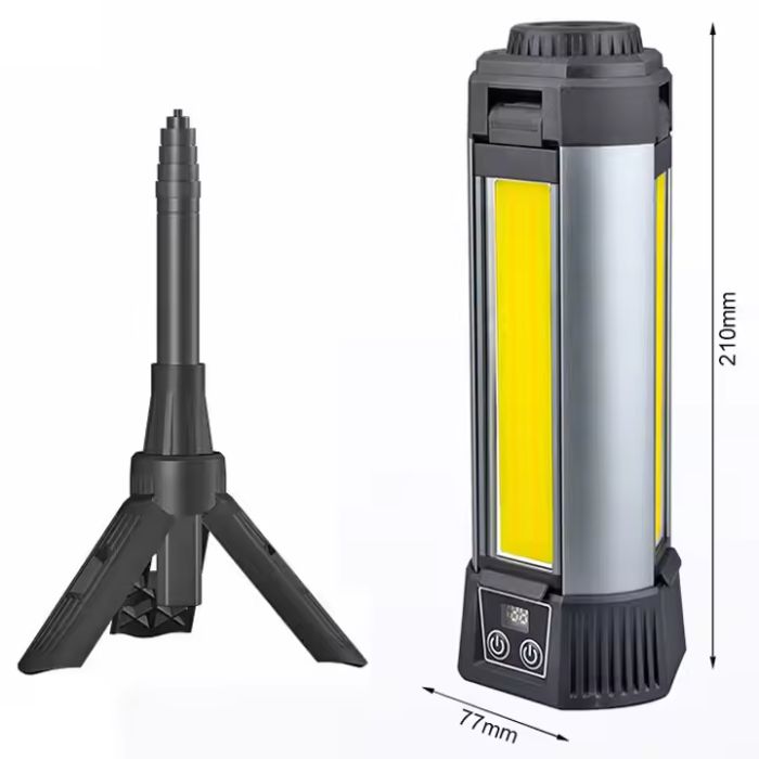 يمتد الاستاند ثلاثي القوائم القابل للتعديل حتى 1.2 متر، مما يوفر زوايا إضاءة مرنة للمخيم أو مواقع العمل. خفيف الوزن وصغير الحجم، ويسهل حمله وتخزينه للمغامرات الخارجية