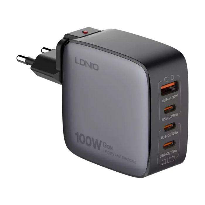 - شاحن فائق السرعة GaN قوة 100 واط 4 منافذ USB من LDNIO