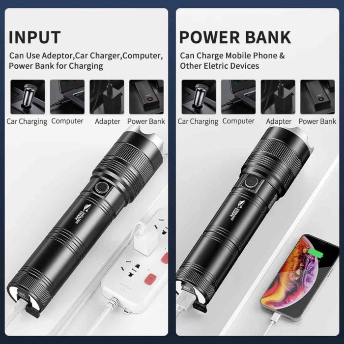 - مصباح يدوي LED فائق القوة سعة 9600 مللي أمبير