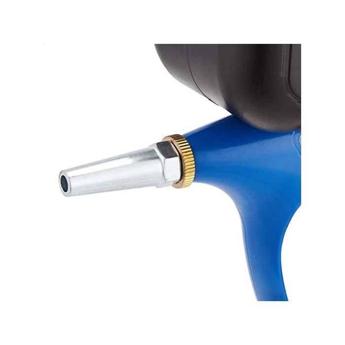 يسمح صمام التحكم في التدفق القابل للتعديل بالتحكم الدقيق في الشدة. على الرغم من قوتها، فإن هذه الأداة صغيرة الحجم وخفيفة الوزن، مما يجعلها سهلة الحمل والتخزين. يرجى ملاحظة أن هذه الأداة تتطلب ضاغط هواء بقوة 3 أحصنة كحد أدنى للتشغيل الفعال. سعتها 510 مل، وتتميز بفوهة قطرها 5 مم. أقصى ضغط 90 رطل/بوصة مربعة، واستهلاك الهواء 6 قدم مكعب/دقيقة عند 90 رطل/بوصة مربعة.