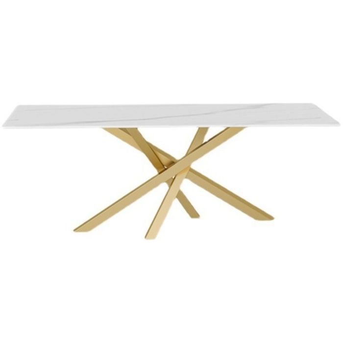 طاولة مصنوعة من سطح من الرخام الصناعي، وقاعدة من الحديد المشغول تمنح حضورًا فاخرًا وثباتًا قويًا، تصميم قاعدة متقاطع يضيف لمسة عصرية، مناسبة لطاولة طعام أو جلسات ضيافة مرتبة، وتكمل ديكورك بسهولة.