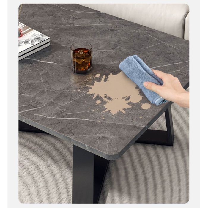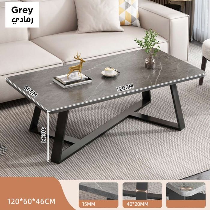 طاولة خشبية بنقشة رخامية مصنوعة من خشب متوسط الكثافة مع إطار فولاذي ثابت، بتصميم عصري يجمع بين الفخامة والعملية، تضيف لمسة راقية لغرفة المعيشة مع سهولة تنظيف وتحمل عالٍ