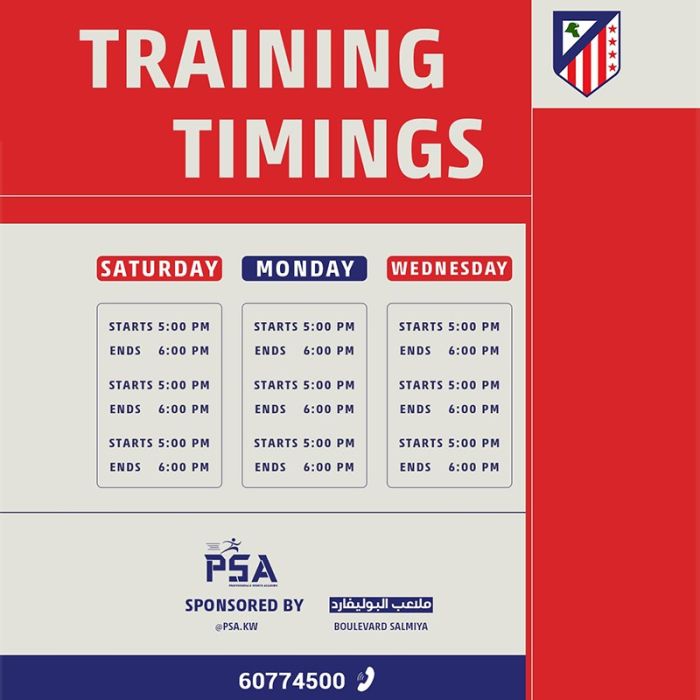- جدول التدريب ملعب كرة القدم ايام السبت والاثنين والاربعاء